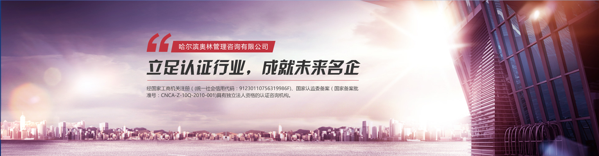 哈爾濱奧林管理咨詢有限公司(原新時(shí)代質(zhì)量認(rèn)證咨詢有限公司)成立于2000年9月,簡(jiǎn)稱(chēng)HOL,HOL是經(jīng)國(guó)家工商機(jī)關(guān)注冊(cè)(統(tǒng)一社會(huì)信用代碼:91230110756319986F)、國(guó)家認(rèn)監(jiān)委備案(國(guó)家備案批準(zhǔn)號(hào):CNCA-Z-10Q-2010-001)具有獨(dú)立法人資格...